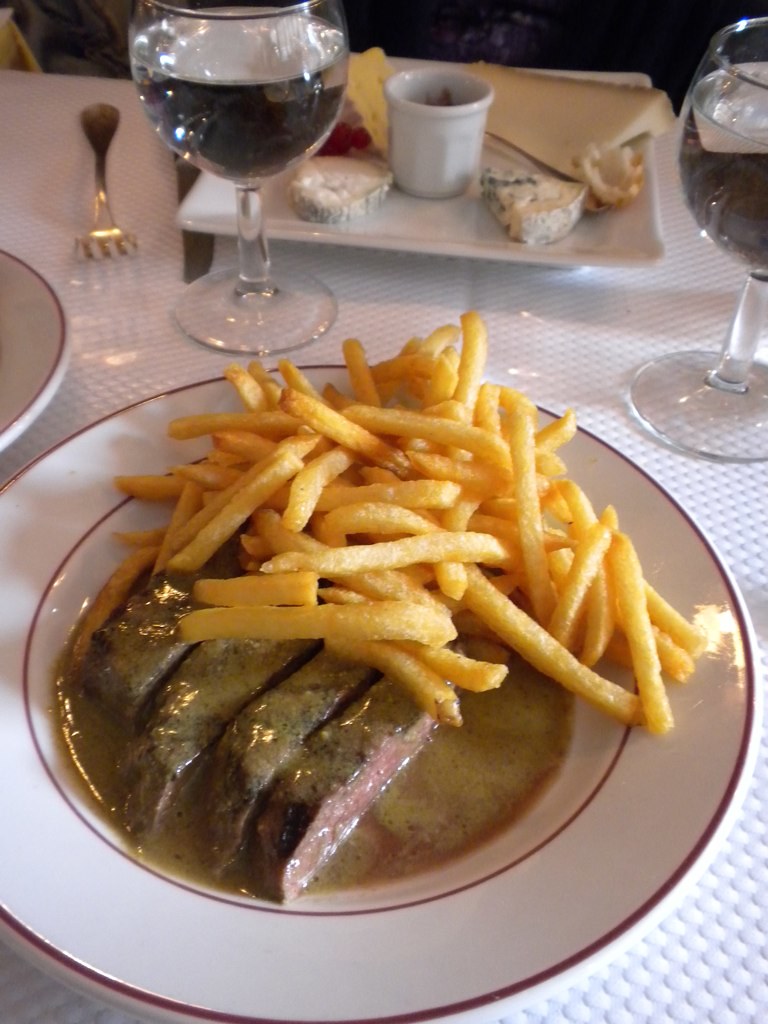 Today is really our last day in Paris. We both seem to be getting a bit tired going around. Nancy had coffee at a local place. We bought gifts at Bon Marche. And I almost lost Nancy at the scarf shop there. We went to the Rodin museum, but it is closed on Mondays. A nice lady spoke with us. She had worked there 40 years and her son lives in Oregon and works too hard. He visited her for 6 days. We walked to the Relais de Entrecote, recommended by Phoebe and Cacki. A steak palace. Nancy got a salad and cheese plate. I was told not to take pictures, as they were worried about their secret sauce. (butter, pepper, tarragon) Pigeons were inside with us. We even had profiteroles. It was a great meal, but 45 Euros for lunch. Evian spelled backwards is naïve, and I got a 4 Euro water I did not order. A fun walk to the scarf shop, and I find it without trouble, it is our 4 th time. We are resting outside in our patio. Nancy is watering the basil and other herbs. It is a beautiful place.